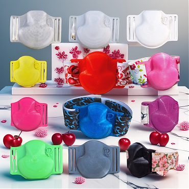A műanyag keretek többféle kivitelben és színben elérhetők. A gumipántok cserélhetők és széles választékban állnak rendelkezésre, egyedi mintázattal is kérhető.